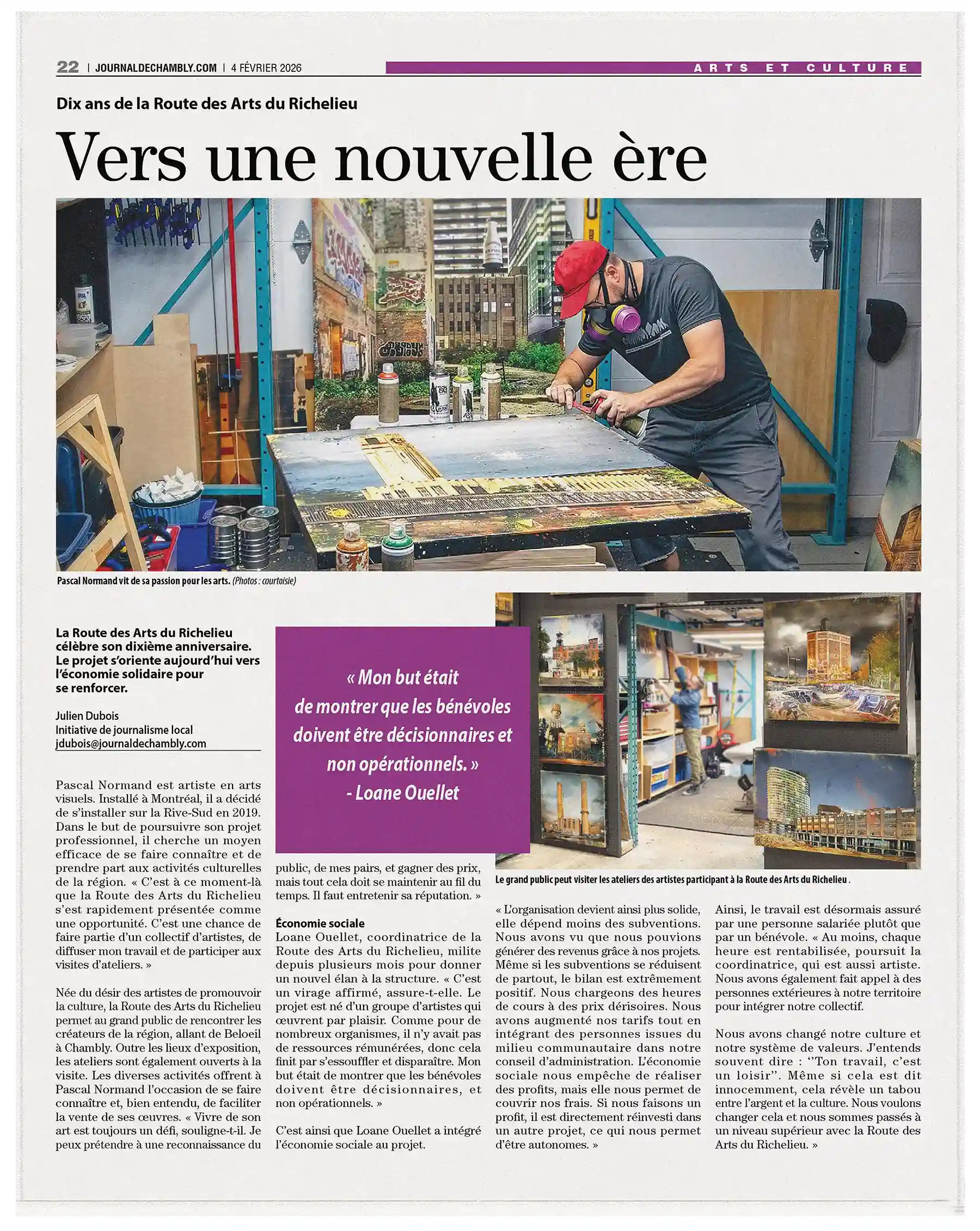 Journal de Chambly, Chambly : Vers une nouvelle ère, Julien Dubois, février 2026