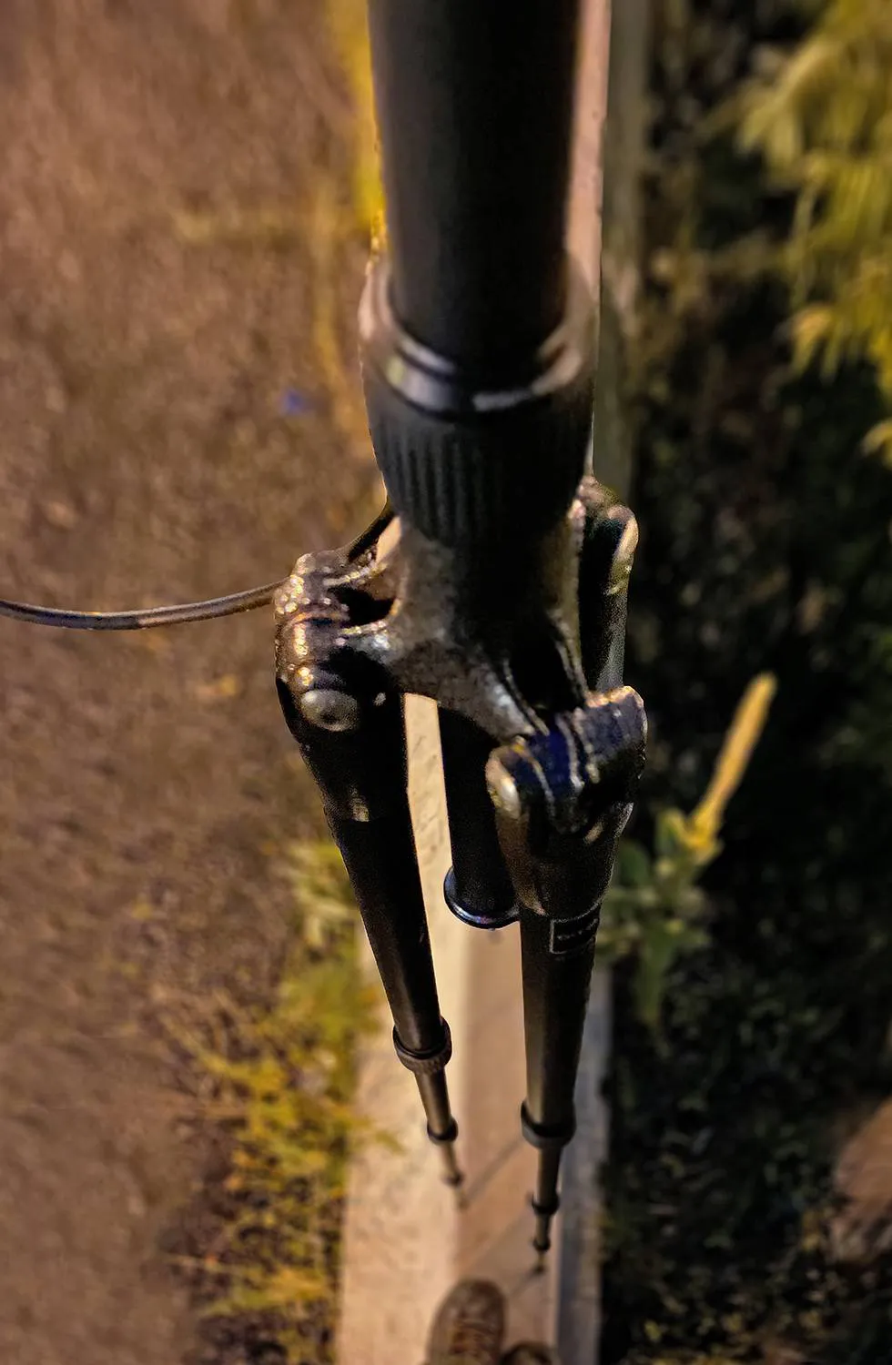 De toute façon, même si c’est interdit, je n’y serai pas trop longtemps et personne ne prendra le temps de me faire remorquer à cette heure. Je débute ma marche, quincaillerie photographique dans mon sac à dos, trépied sur l’épaule. Courte marche de 5-6 minutes puisque je suis stationné dans une zone « VIP ». Je passe sous le pont. L’autoroute Bonaventure vibre derrière moi. Je trouve mon angle, mais la végétation d’un été avancé cache une partie de l’ouverture que je souhaite avoir sur le fleuve. Je dois me placer plus en hauteur si je veux ma shot… Un muret de béton devant moi… Ouain. 6 pouces de large pour y grimper, mon trépied et moi, mais surtout, y trouver la stabilité requise pour de multiples longues expositions?